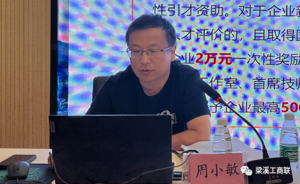 周小敏从梁溪英才计划、大学生就业政策、职称申报和企业登记认定四方面作了深入浅出、细致全面的讲解,并和在场民营企业代表人员进行互动,解答关于人才政策方面的疑问。