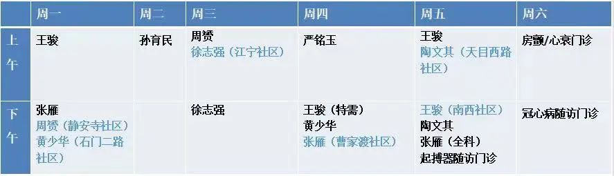 复旦附属静安区中心医院心内科专家门诊一览表