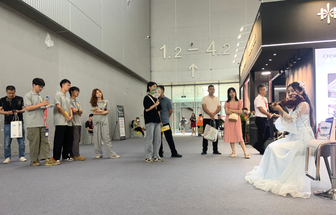 展现了古典音乐与现代装饰的巧妙结合,引得很多观众驻足观看,在现场人气爆棚。