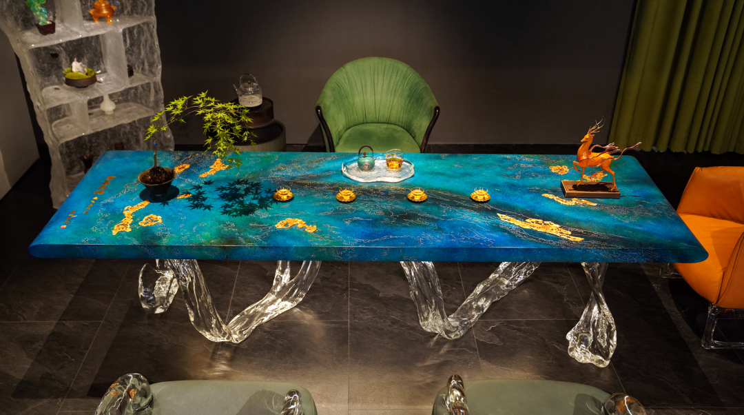 万泉归海飞天系列颠覆了大众对于传统茶家具的认知,同时也能激发对传统文化的热爱。适用于多种场景,置于商务办公空间,极显主人格调与品味,一方茶案,一盏清茶,见证生活与艺术的交流;或置于书房,品淡淡茗香,安享一份难得的风雅,让居所不限于空间。茶桌亦可如艺术品般美轮美奂!