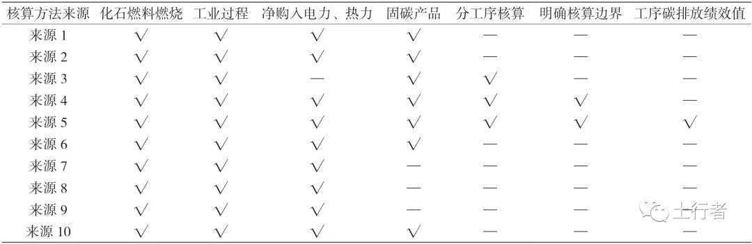 1 国内钢铁行业碳排放核算方法对比