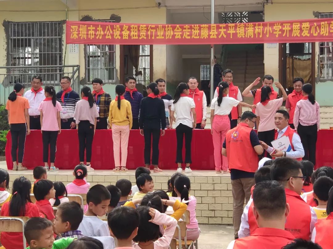 10月26日,深圳市办公设备租赁行业协会成员一大早就来到了天平镇满村小学开展爱心助学活动,协会爱心成员向17名贫困学生发放了慰问金,合计14200元,给学校捐赠了办公电脑、桌椅、风扇、饮水机、书包、各式体育用品等,价值8万余元。