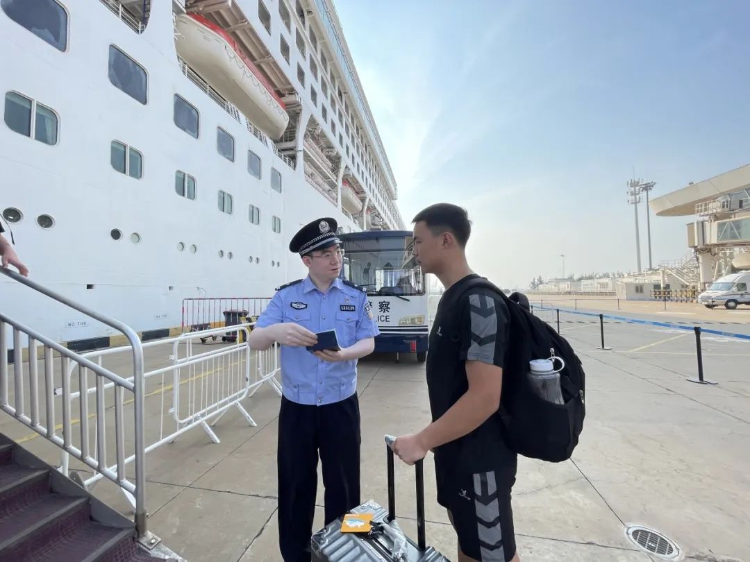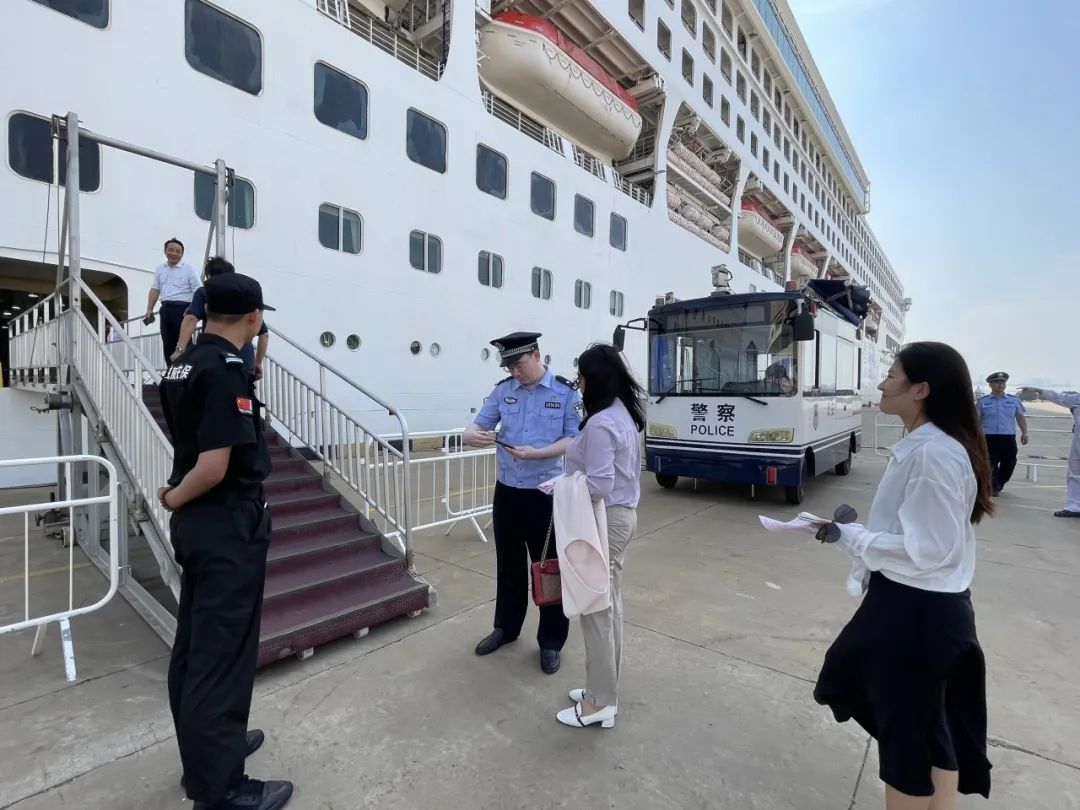 优化上下外国船舶许可手续办理流程,对符合申请条件的人员,即申即办、当场办好,确保与会嘉宾登轮高效顺畅。同时,增派部分警力对邮轮母港限定区域进行巡查监护,保证邮轮在港期间安全,保障活动顺利如期举行。