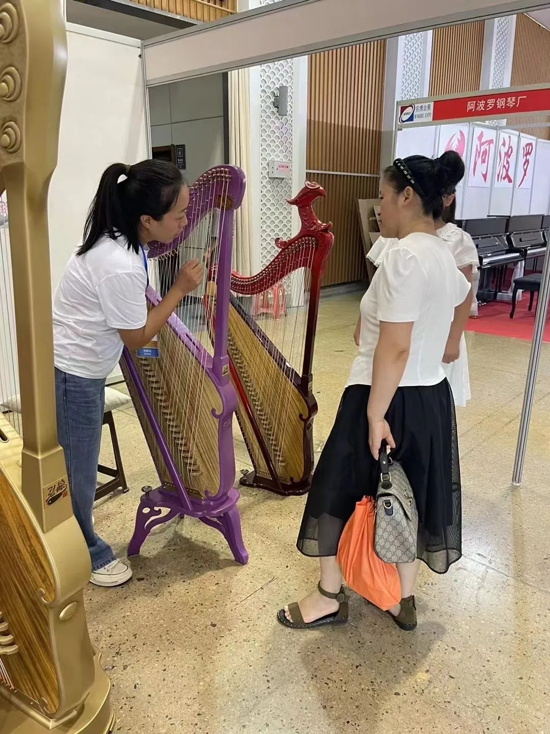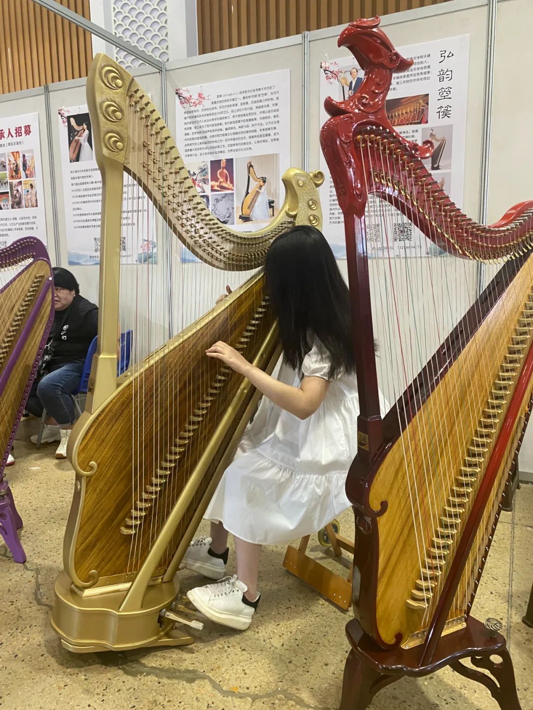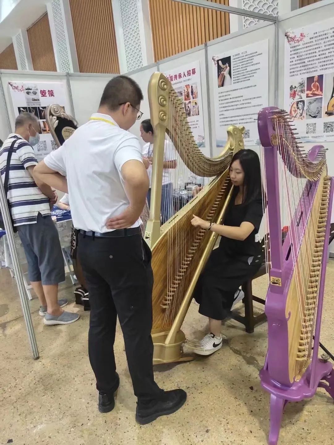 2023年8月28日,第三届中国(青岛)乐器产业及音乐教育展览会圆满落下帷幕!8月25日至28日期间中国(青岛)乐器产业及音乐教育展览会在青岛国际会展中心举行,弘韵箜篌携手青岛民管—箜篌专委会在本次展会上精彩亮相。