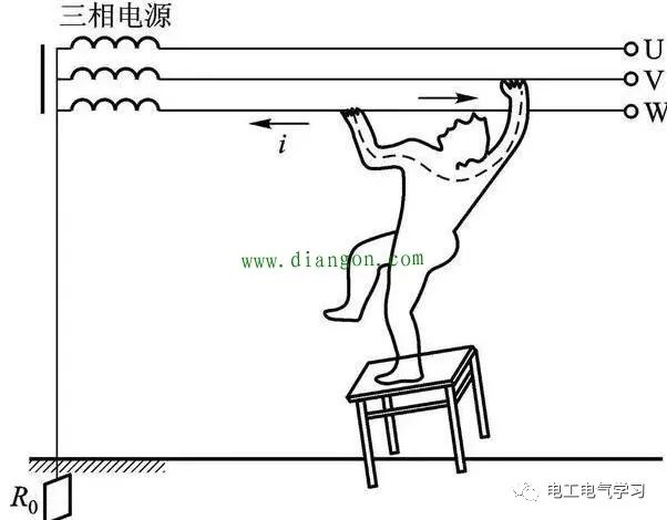 这种情况发生在人体触碰到两根相线,这样导致加在人体之间的电压达到380V,人体与两根相线形成回路,电流流过人体导致触电。