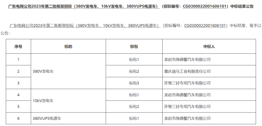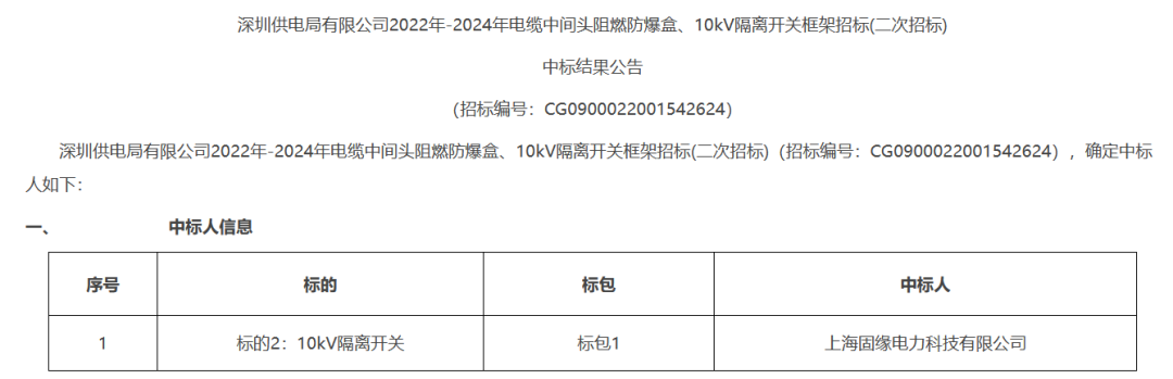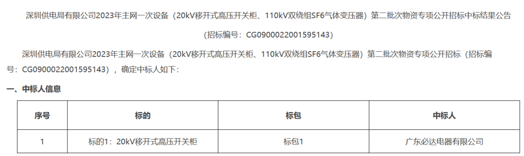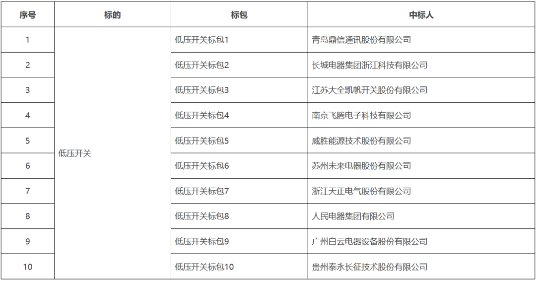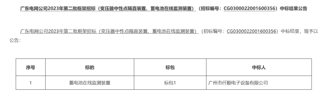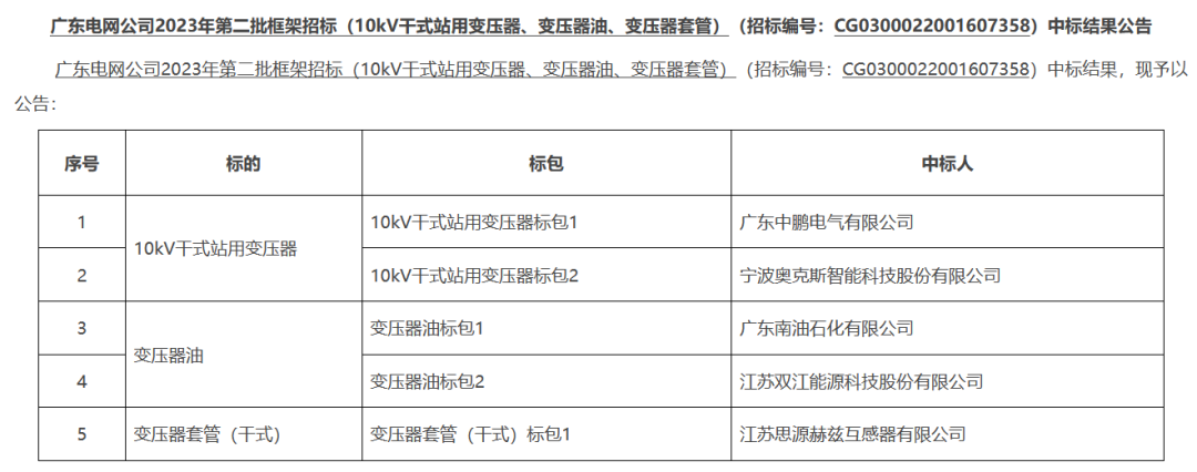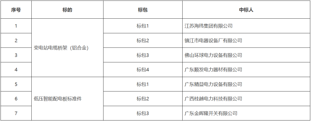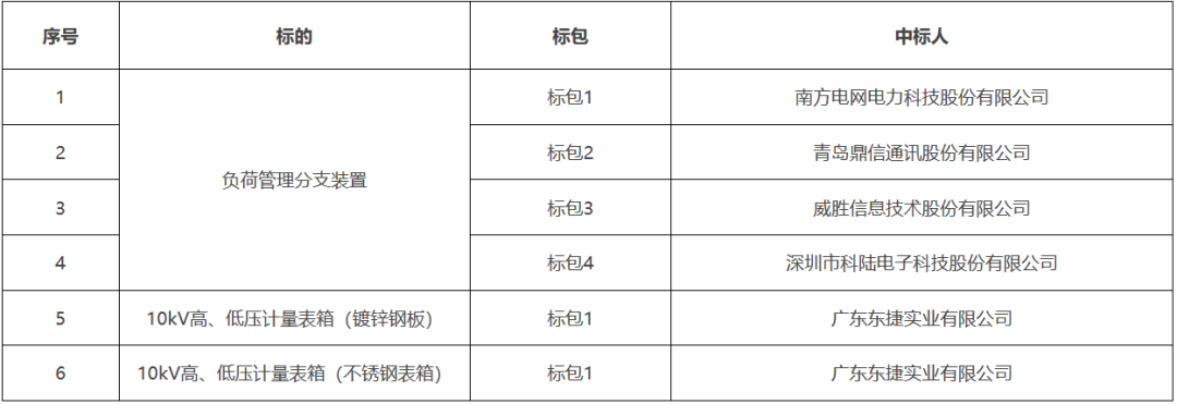 广东电网公司2023年第二批框架招标(负荷管理分支装置、10kV高、低压计量表箱(镀锌钢板)、10kV高、低压计量表箱(不锈钢表箱))(招标编号:CG0300022001607959)中标结果,现予以公告: