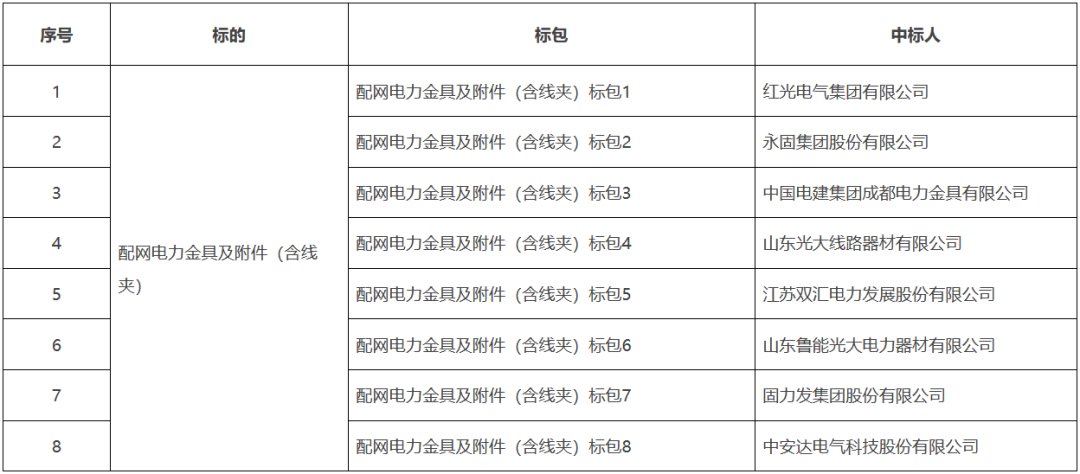 广东电网公司2023年第二批框架招标(配网电力金具及附件(含线夹))(招标编号:CG0300022001610981)中标结果,现予以公告: