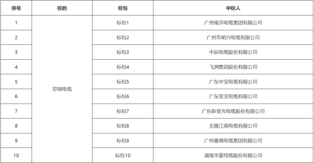 广东电网公司2023年第二批框架招标(控制电缆)(招标编号:CG0300022001603187)中标结果,现予以公告: