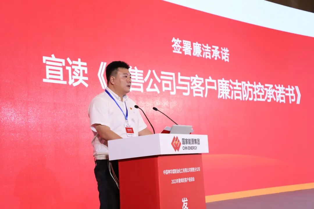 纪委办公室负责人宣读《销售公司与客户廉洁防控承诺书》