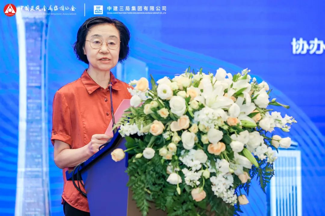 宋为民在致辞中对钢结构行业的发展背景做了介绍。他表示,中国建筑金属结构协会围绕钢结构建筑产业链协同发展内核,重点开展了以下几项工作:一是牢固树立质量第一意识。二是着力提升行业综合质量。三是努力推动行业成果交流。四是集中优质资源为行业发展以及推进关键核心技术攻关、标准制定、专业培训、学术交流等提供了强有力的技术支撑,合力加快前沿技术研发和应用推广。五是扎实做好会员服务工作。