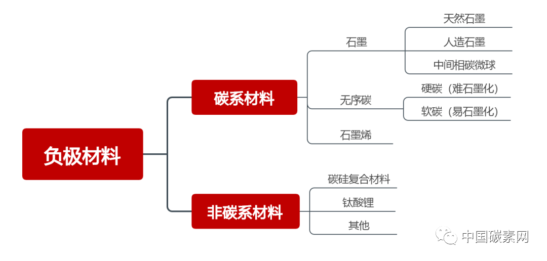 负极材料由负极活性材料、粘合剂和添加剂混合制成糊状均匀涂抹在铜箔两侧,经干燥、滚压而成。负极材料按所使用的活性材料的不同,可划分碳系材料(石墨、无序碳、石墨烯)和非碳系材料(硅碳复合材料、钛酸锂等)。