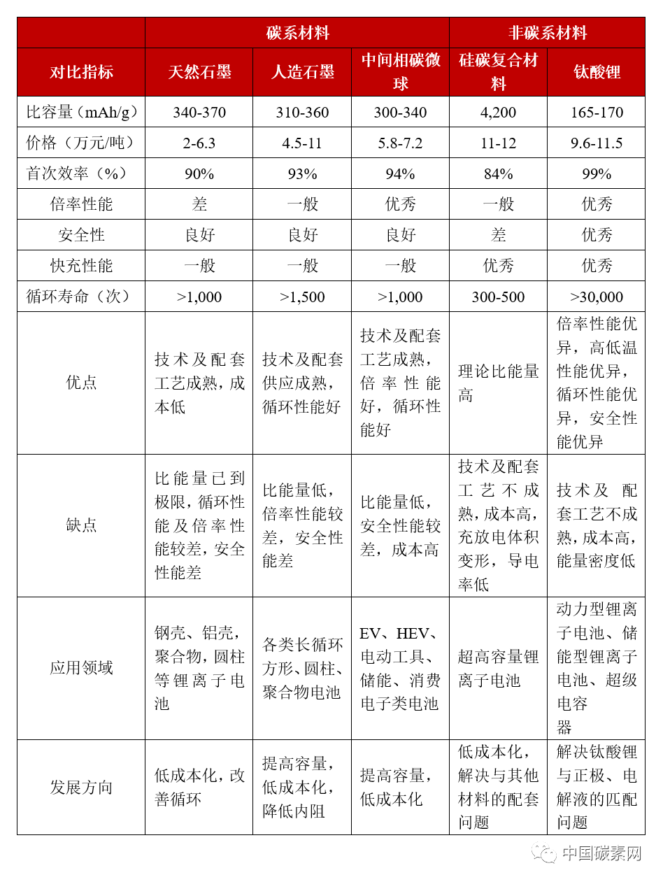 碳系材料由于具有高比容量、低电化学电势、良好的循环性能、低成本、无毒、在空气中稳定等优点,所以成为目前市场上最成熟的锂电池负极材料。尤其是市场化应用程度最高的人造石墨和天然石墨,材料性能、性价比等综合优势明显。
