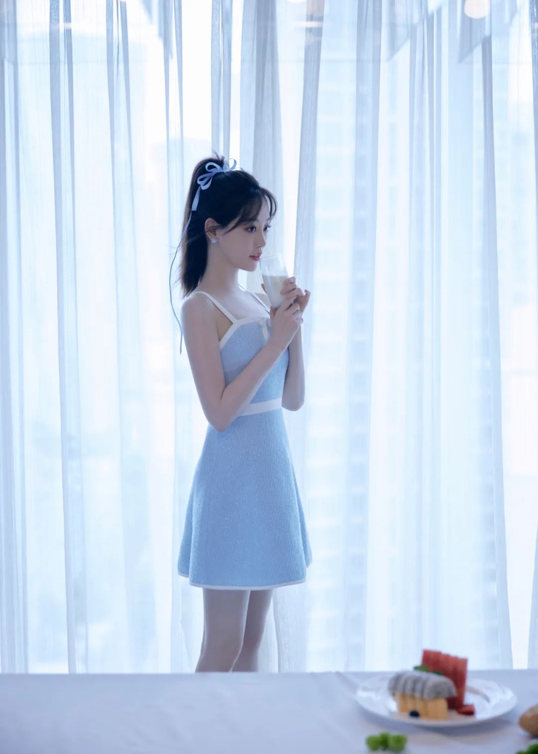 蓝白小香风裙装梦幻优雅