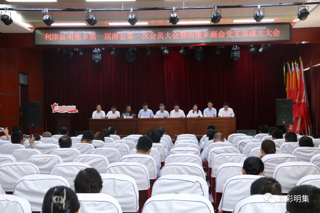 会议宣读了《关于成立利津县明集乡商会的批复》、《关于同意成立利津县明集乡商会党支部的批复》。会议听取了《明集乡商会成立的筹备工作情况报告》。会议审议通过了《利津县明集乡商会章程》(草案)、《利津县明集乡商会选举办法》(草案),并严格按照选举办法和流程,选举产生商会监事、理事、第一届领导班子。