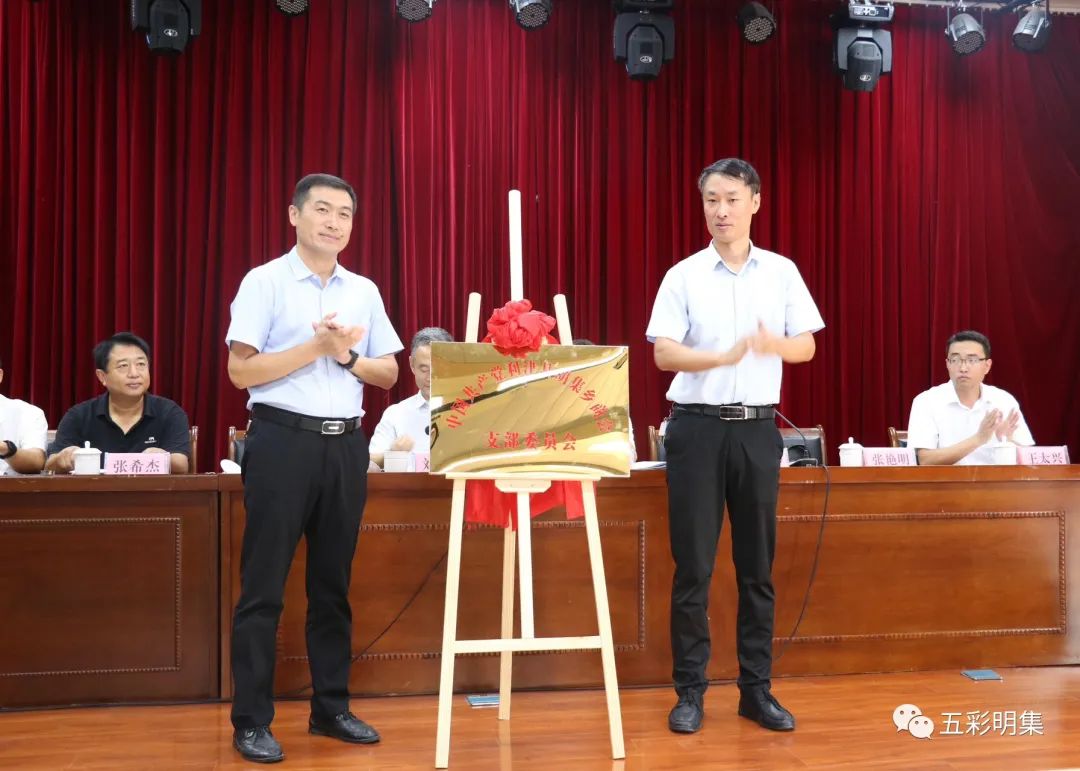 县政协副主席、工商联主席刘建民同志,商会会长马汝杰同志共同为商会揭牌;明集乡党委书记李广谱同志,县城乡基层治理服务中心副主任张艳明同志共同为商会党支部揭牌。