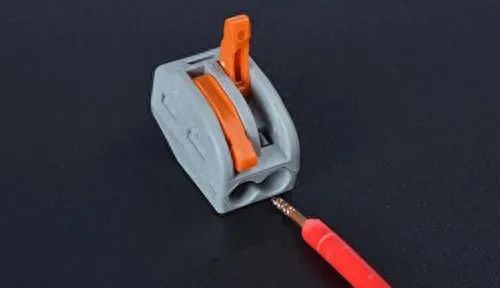 为了避免上面这两个问题现在的师傅都用专业的电线连接器,只要把电线接头处的皮剥掉大概1mm