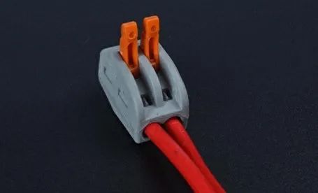 然后将两根需要并的线分别插入两个连接器里,按下卡扣,电线就接好了