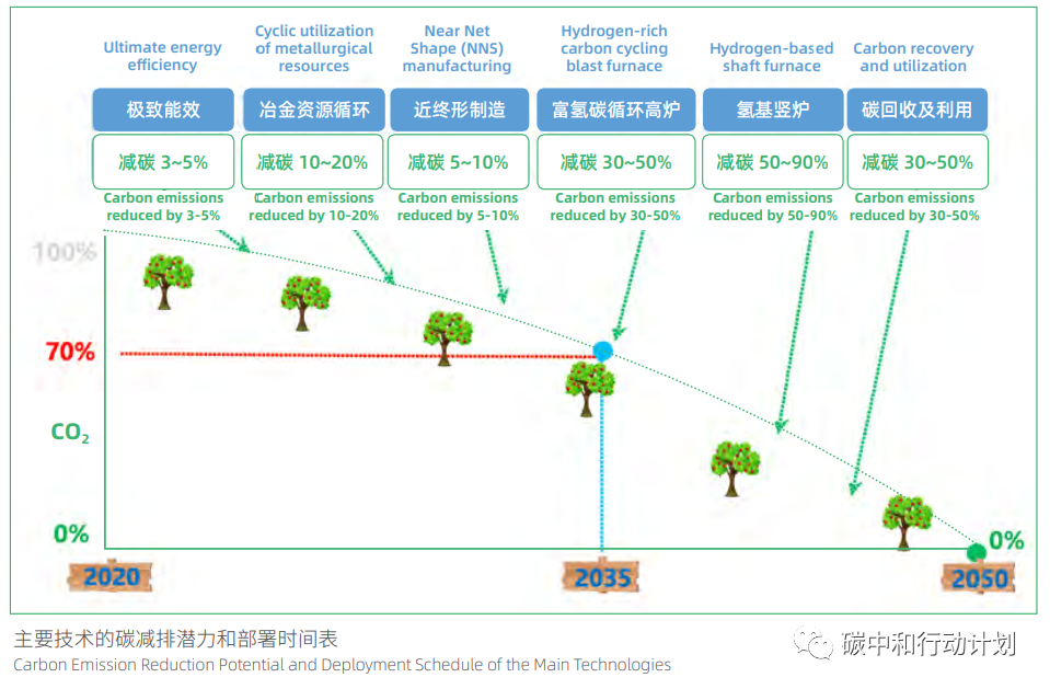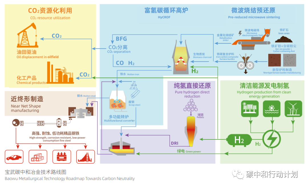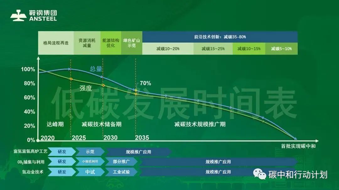 为了更好地理解低碳冶金、氢冶金等绿色低碳冶金技术,往下我们看两个钢铁行业头部企业冶炼技术绿色低碳改造发展路线的实例。