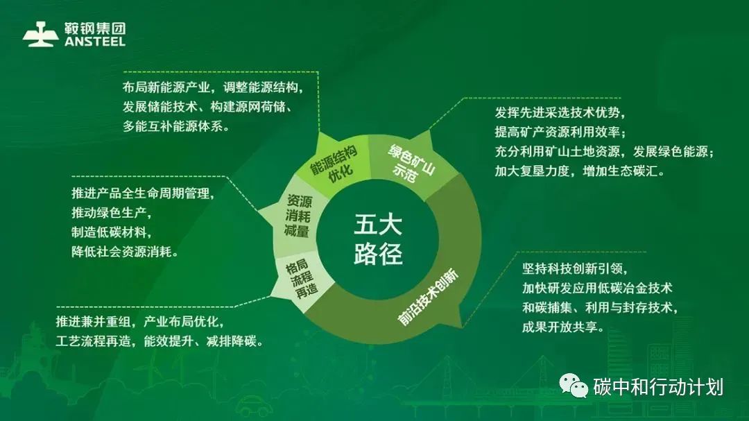 鞍钢集团低碳发展“五大路径”中的“前沿技术创新”部分体现了鞍钢在绿色冶金技术上的发展规划。