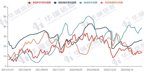 产销方面,周中涤纶长丝多数厂商让利出货,下游用户逢低买入,局部产销回暖,整体产销率环比上周上升。
