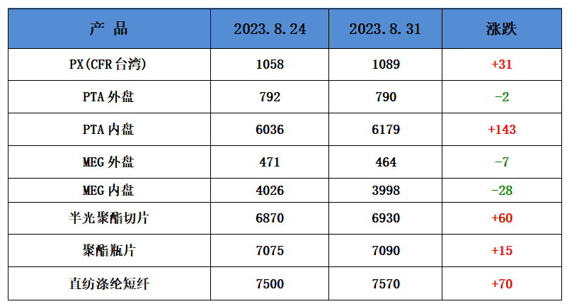 8月以来,下游局部织造企业略有好转,但9-10月亚运会期间萧绍地区聚酯及终端织造印染企业仍存限产预期,或仍旧拖累市场信心。