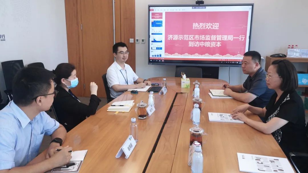 中粮资本相关负责人赵鑫、赵雨新,济源示范区市场监管局总检验师陈建庄参加洽谈。