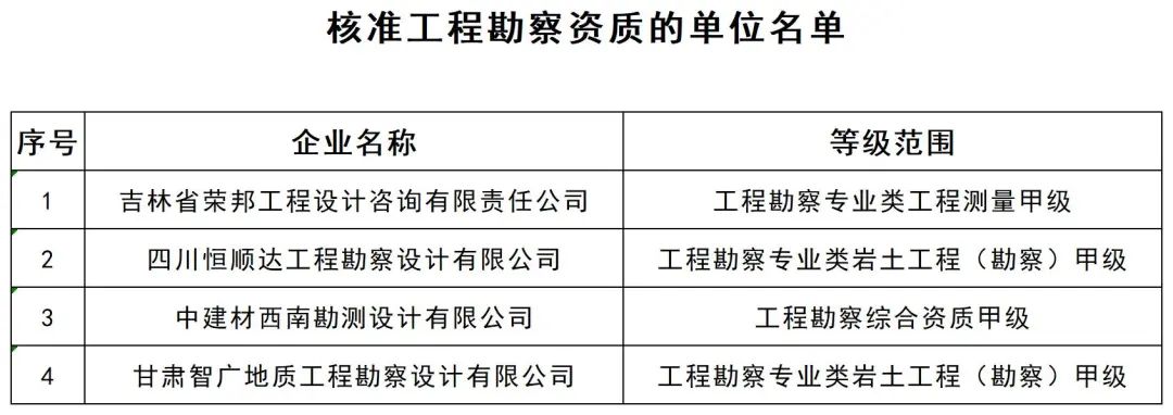1.核准工程勘察资质的单位名单