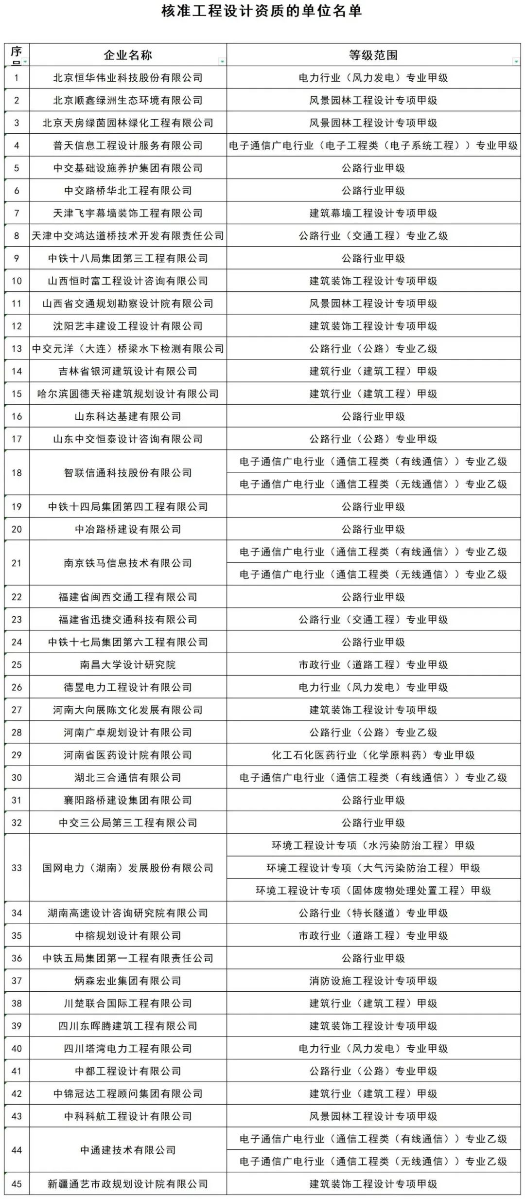 2.核准工程设计资质的单位名单