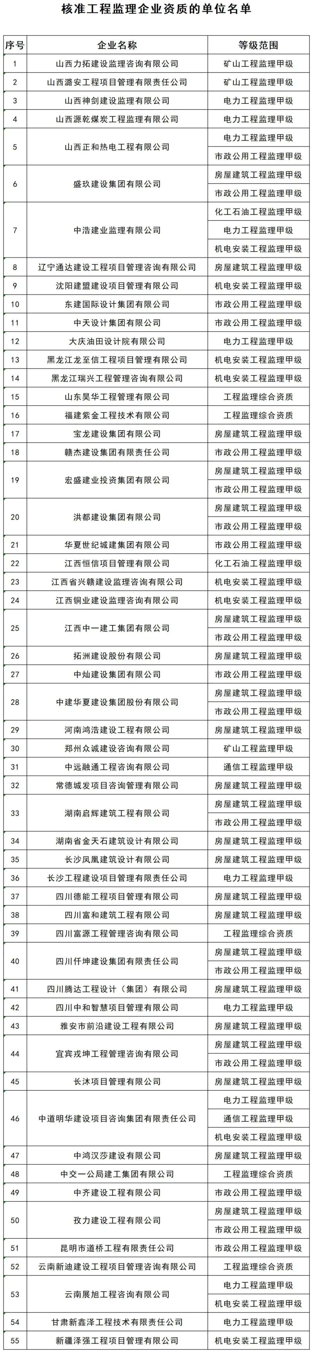 4.核准工程监理企业资质的单位名单