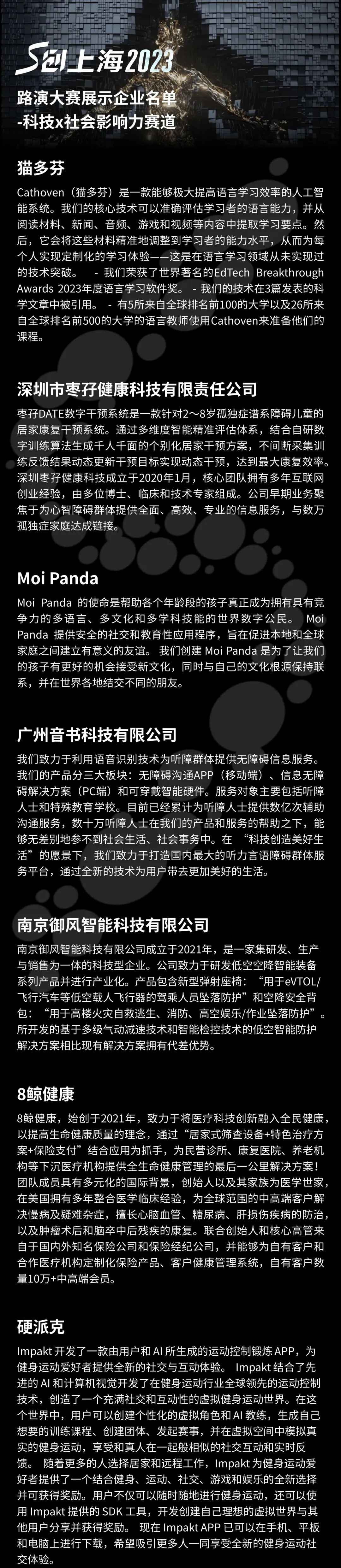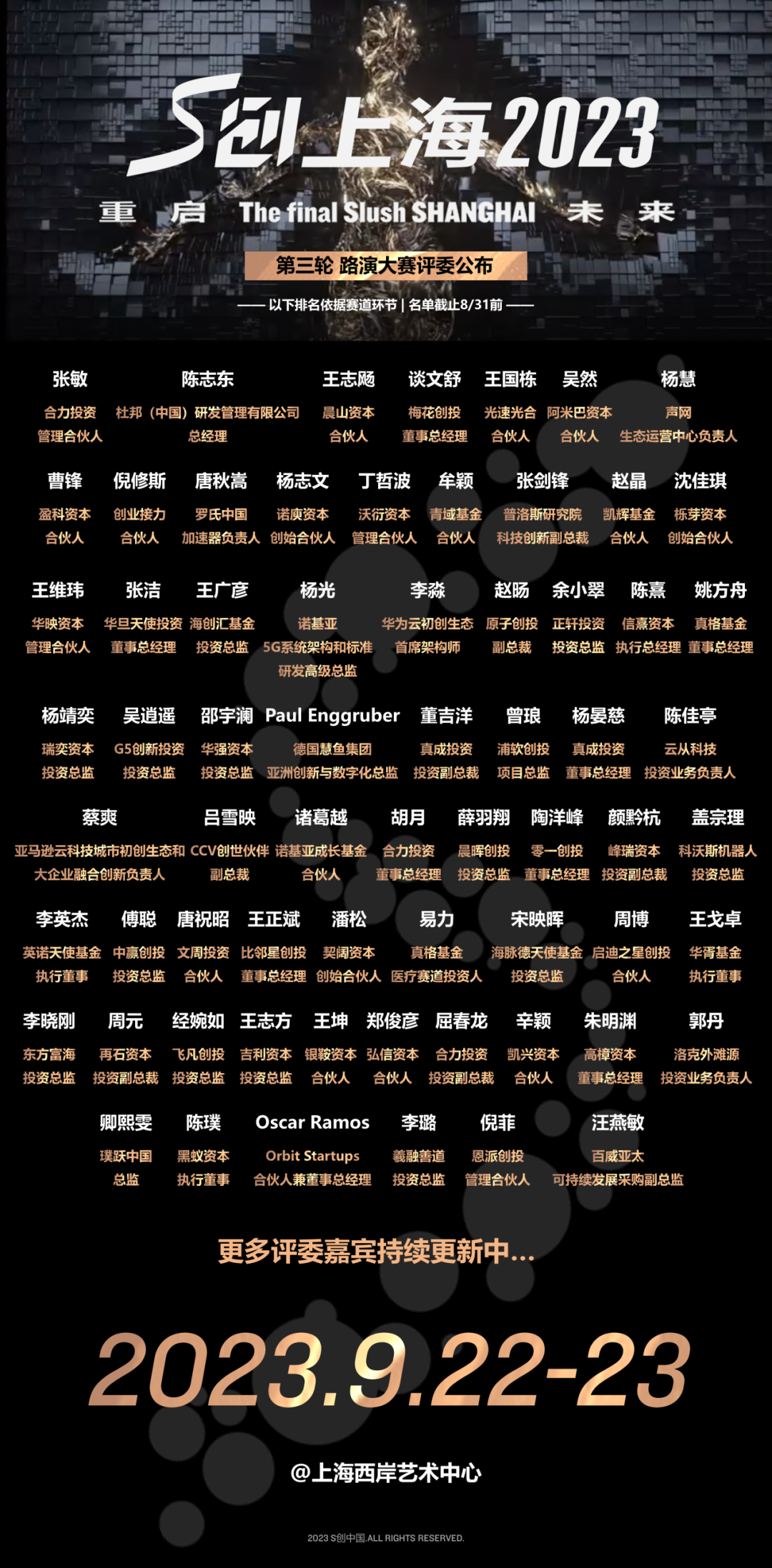2015年至今,Slush China已成功在北京、上海、深圳、南京、扬州等科技创新最活跃的城市举办十余场国际创新大会,Slush China每年在上海举办的科技创新大会已成为亚洲最国际规模最大影响力最强的科技创新大会之一,被福布斯杂志评选为中国顶尖国际初创和科技行业大会。经过8年的发展,2022年起Slush China全面升级为“S创”而Slush芬兰团队给予全力的支持。S 创中国团队将秉承创新精神,扎根中国创新热土与Slush 芬兰,共同帮助志在改变世界的下一代创新者获得成功!