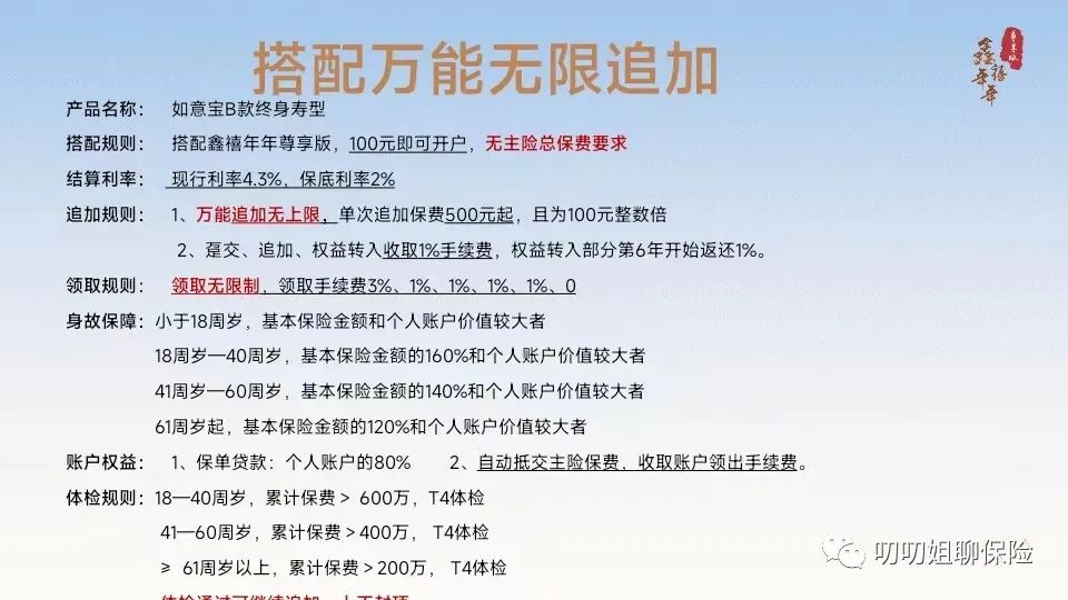 鑫禧年年(尊享版)投保后,可以附加如意宝B款万能账户