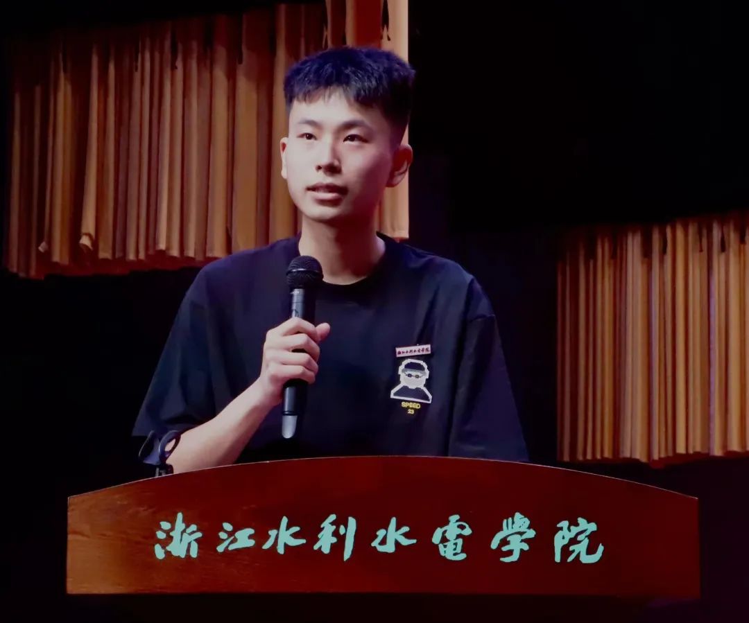 新生大会上,学院领导为新生代表佩戴校徽。新生代表金浩天、在校生代表叶银豪分别作了发言。教师代表、新生班主任代表王俪睿为新生送上美好祝福。实验中心教师吴琦灿介绍了用电安全知识。