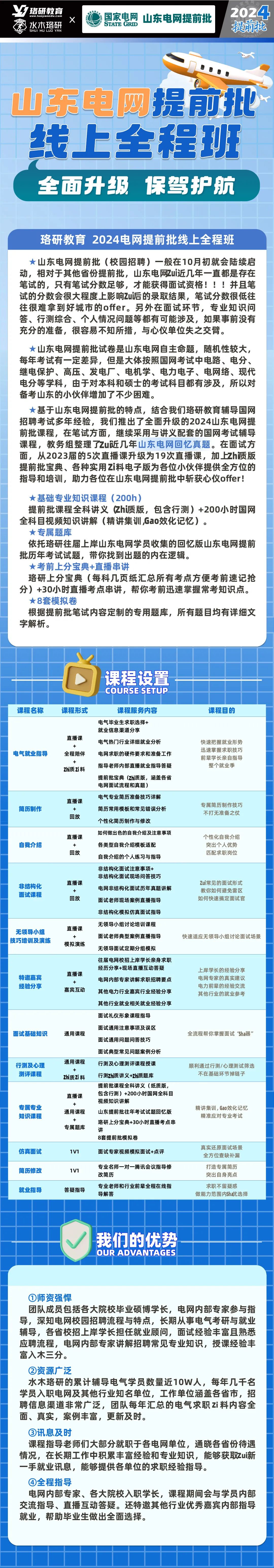 基于山东电网提前批的特点,结合珞研教育辅导国网招聘考试多年经验,我们推出了全面升级的2024山东电网提前批课程,在笔试方面,继续采用与讲义配套的国网考试辅导课程,教务组整理了最近几年山东电网回忆真题,加上各种实用资料助力各位在山东电网提前批中签约理想单位!