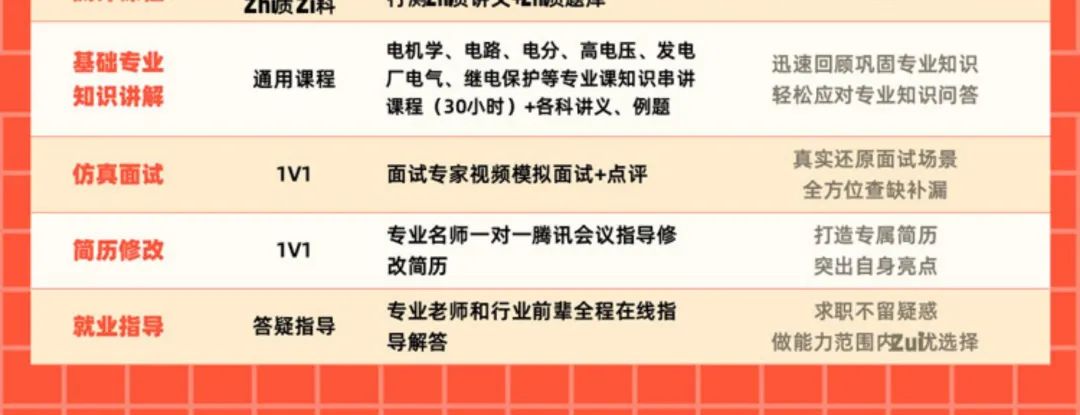 建立线上授课——一对一修改——面试模拟——答疑反馈的闭环流程,帮助大家了解心仪单位的竞争力和招聘流程,让大家一周内学完提前批专业知识,通过提前批行测的烧脑选拔,为电气毕业生们提前批拿到心仪的offer保驾护航!