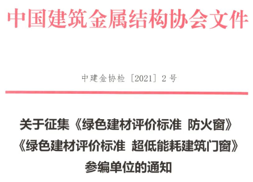 1. 关于征集《绿色建材评价标准 防火窗》 《绿色建材评价标准 超低能耗建筑门窗》参编单位的通知