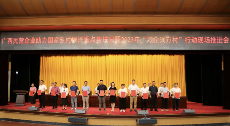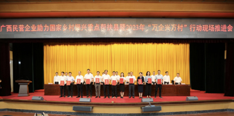 会上,自治区“万企兴万村”行动成员单位,市、县、乡镇代表依次发言。会议还举行了民营企业助力乡村振兴重点帮扶县联系帮扶工作签约仪式。