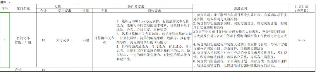 1.岗位需求表