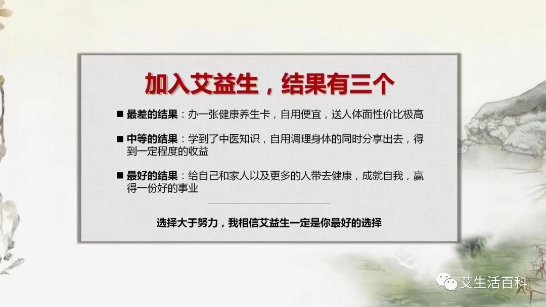 3、最好的结果:成为养生专家,给别人带去了健康,成就了自我,获得财富自由,人生自由,赢得了一份自利利他有福报的事业。