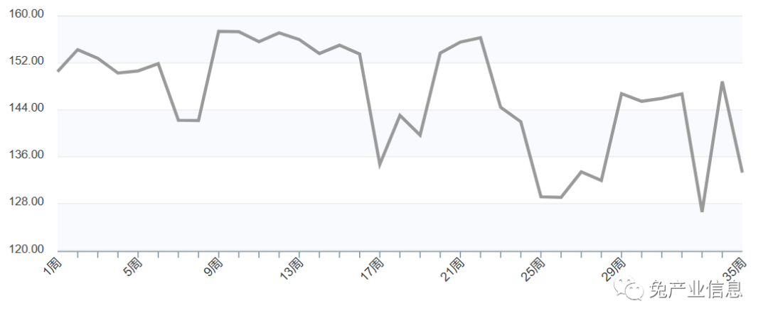 最近一周兔产业表现为133.29,与上周相比下降10.45%