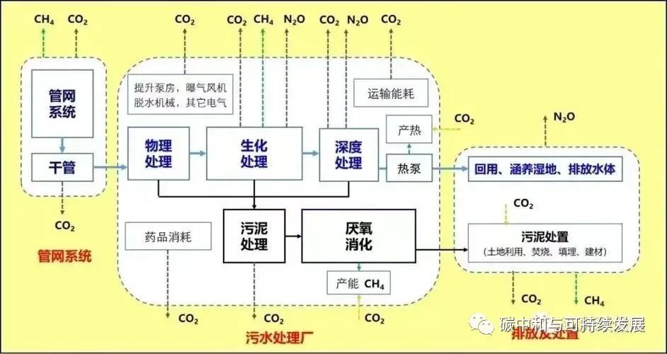 污水处理工艺多样,但本质是通过生化反应来去除水中污染物。因此,在处理环节需要投加碳源和多种化学药剂。这些原材料在生产和运输过程中消耗能源,在投加过程中也消耗一定能源。
