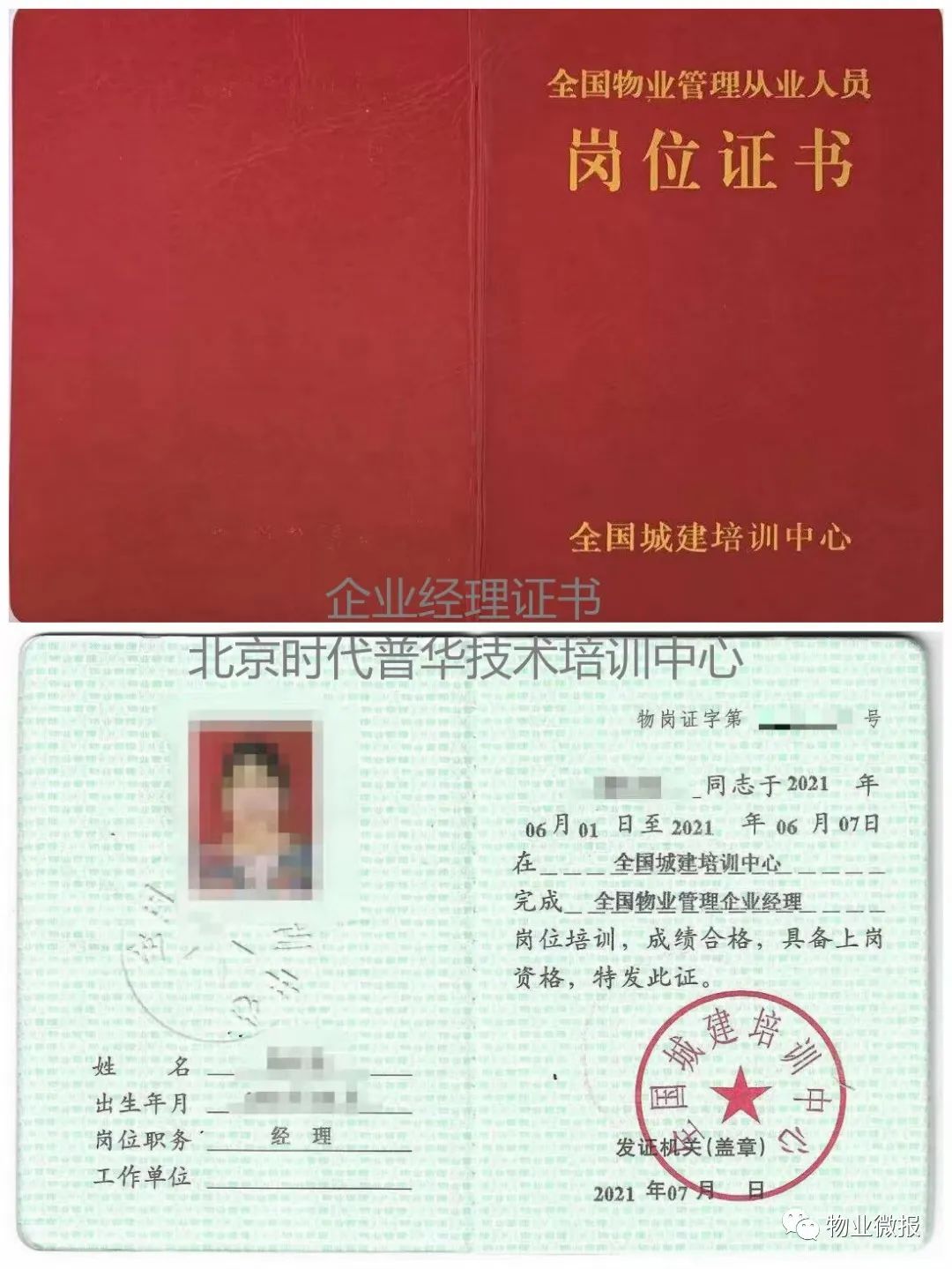 1、全国物业企业经理证(岗位证)