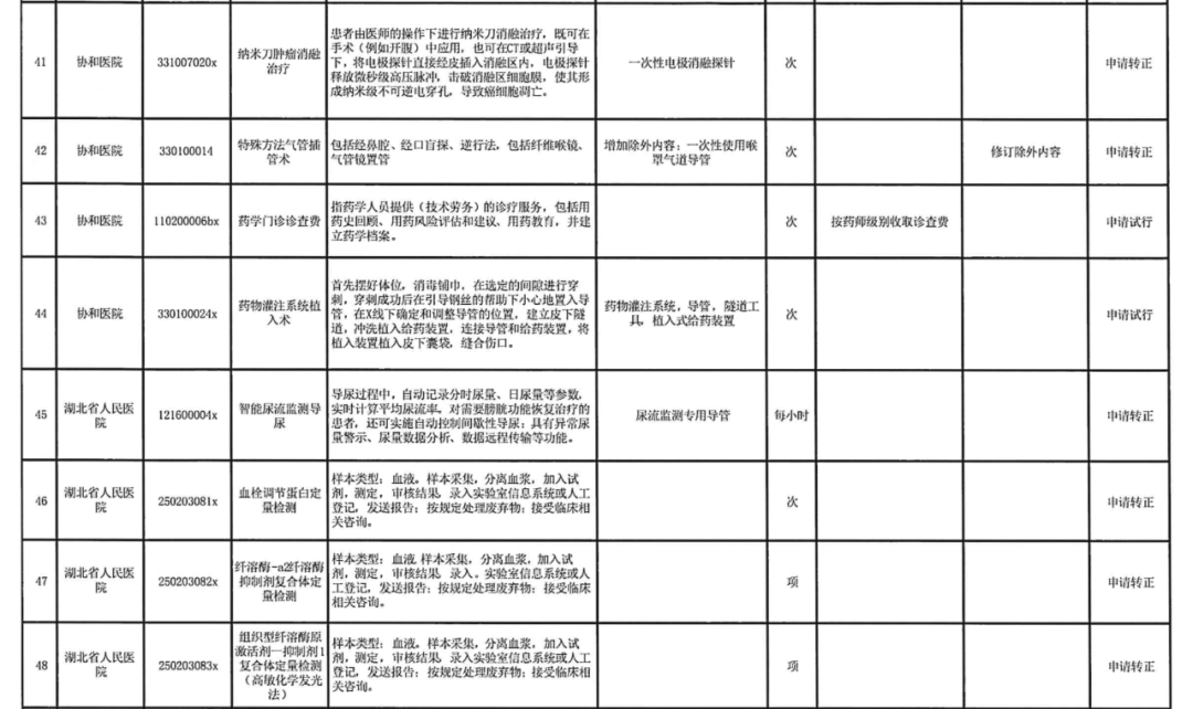 新增医疗服务项目价格试行期原则上不超过2年,确因项目涉及病例极少等客观因素,试行期间医疗机构未发生实际工作量的,在试行期满前3个月,由医疗机构向市医保局提出书面延期申请。理由清晰充分的,试行期可顺延2年(仅可顺延1次);理由不充分或未在试行期满前提出书面申请的,试行期满后项目终止执行。可由多家三甲医院进行物价的申请。