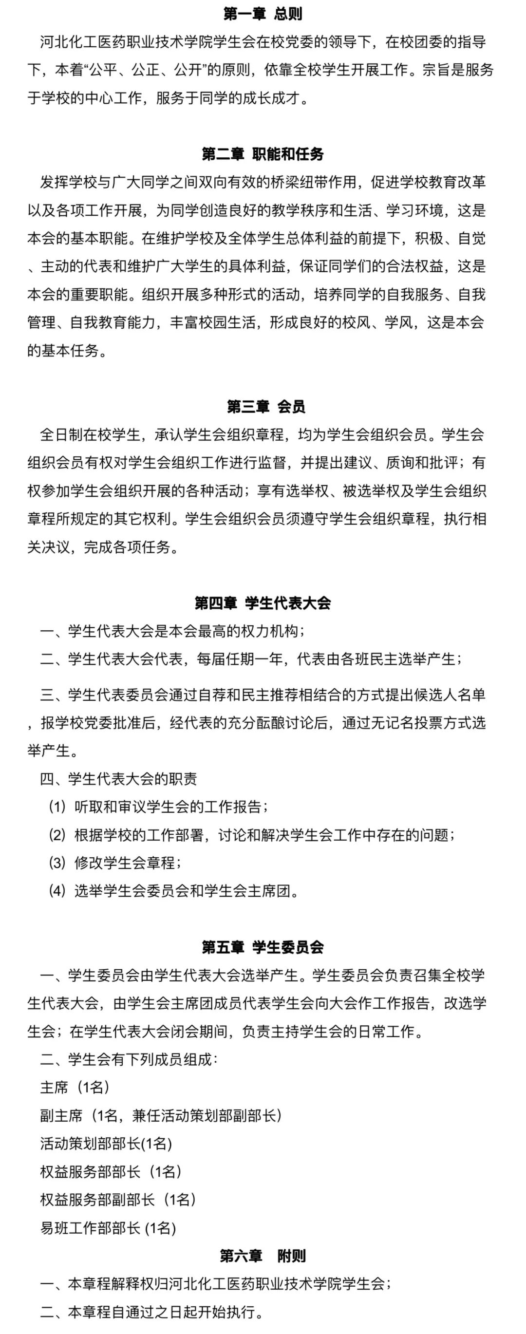 (一)河北化工医药职业技术学院第四届学生会主席团由河北化工医药职业技术学院第四次学生代表大会选举产生。选举的组织工作由大会主席团主持。