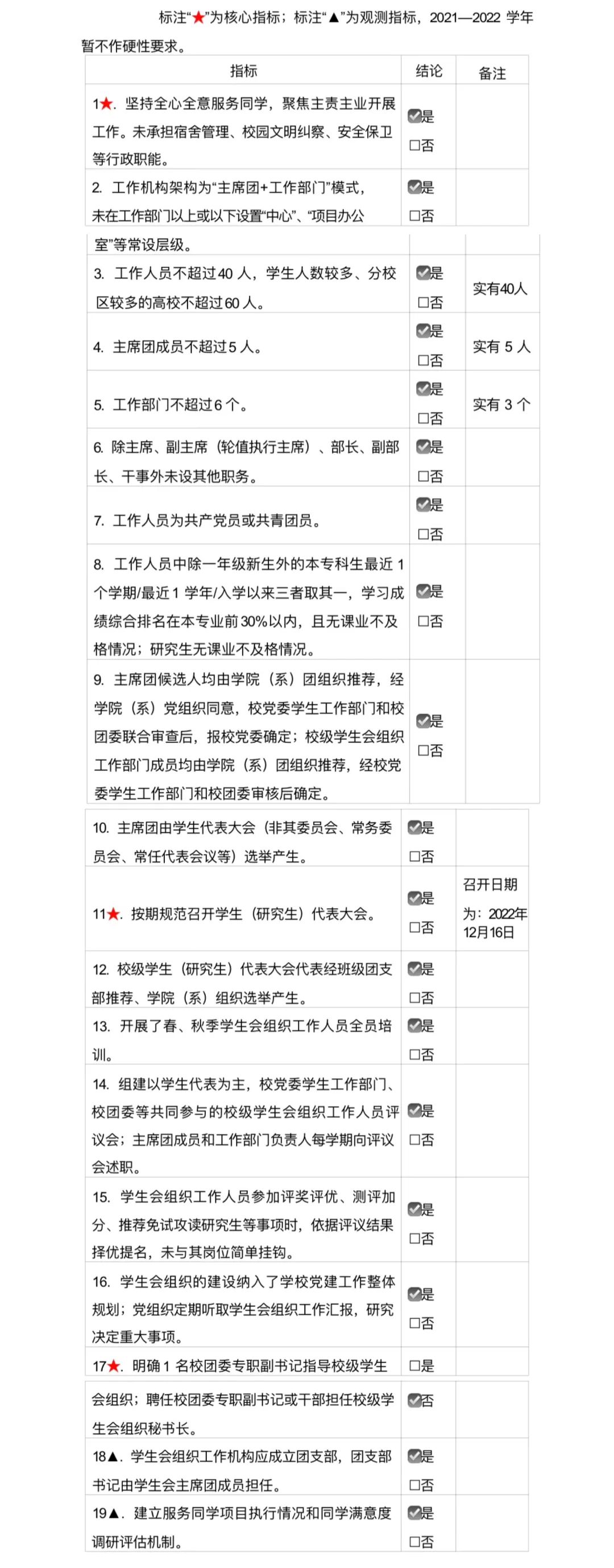 校级学生会组织改革自评表