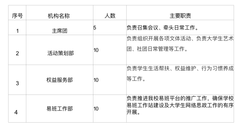 校级组织工作机构组织