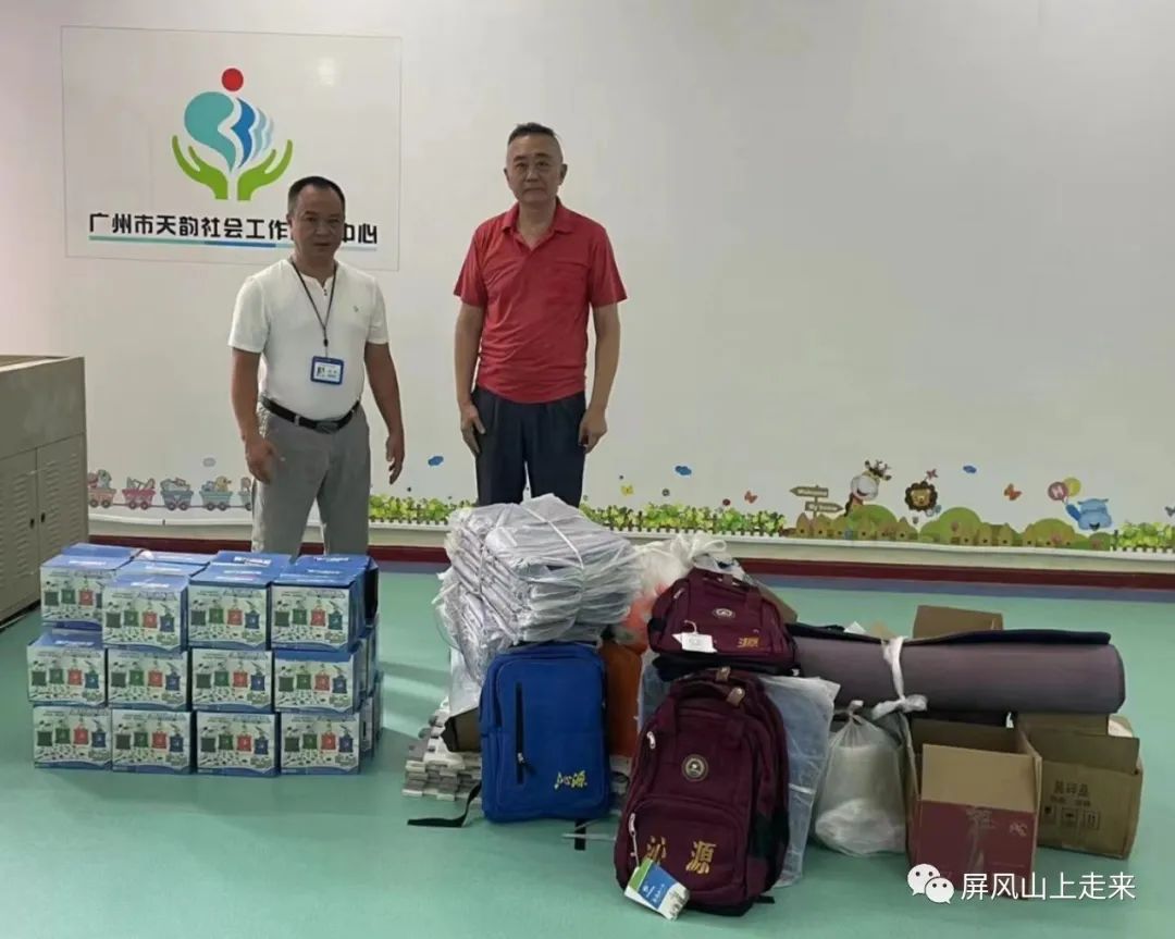 送物资到了天韵中心,恰好,校长邹雷老师也在,为了不打搅他们的工作,另外我也来了这么多次,所以把捐的物资搬上楼,不多逗留。在大堂前,和邹校长在物资前合影后就离开了。