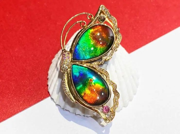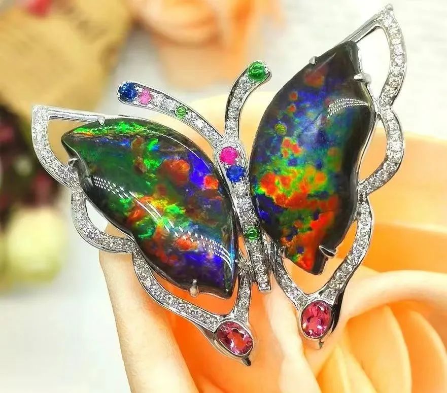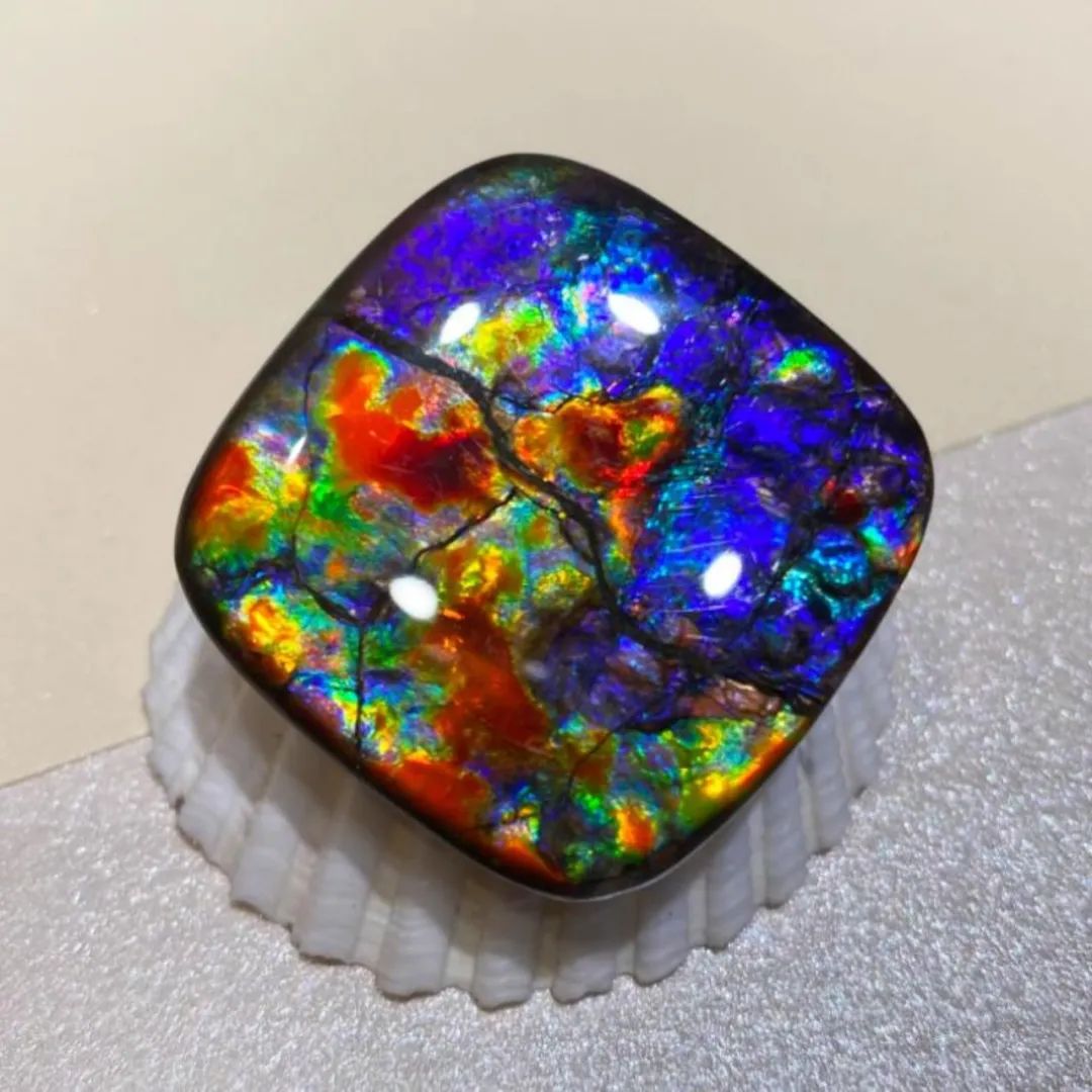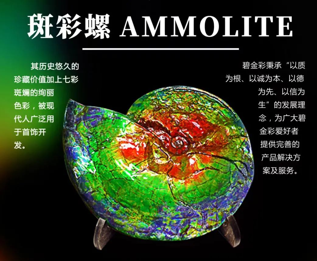 (1)斑彩石是远古时期海洋生物“鹦鹉螺”的化石,是一种稀有的发乳光的宝石,成分来源于菊石化石;