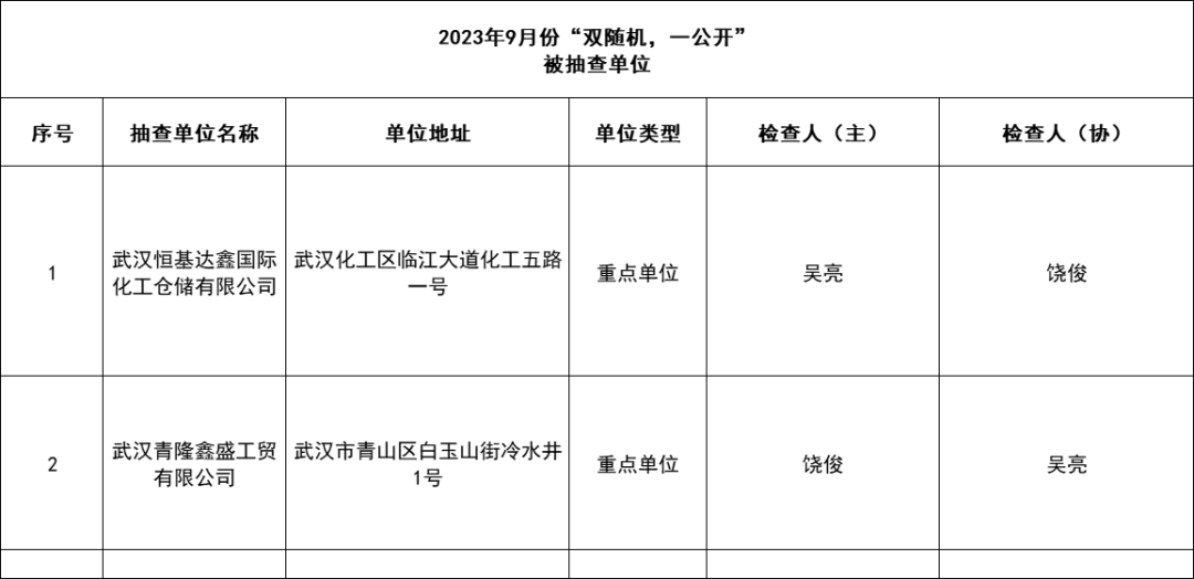 2023年9月“双随机、一公开”监督抽查任务公示:
