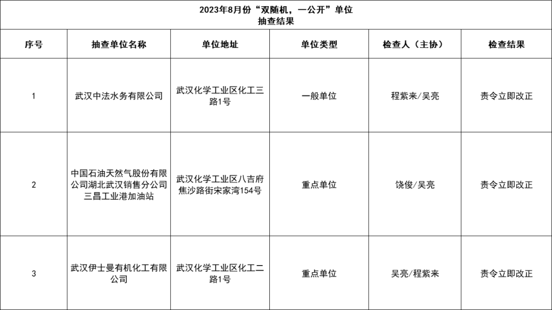2023年8月“双随机、一公开”监督抽查结果公示: