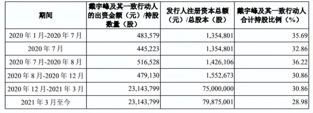 同时,截至招股说明书签署日,除杨惠仙外实际控制人戴宇峰未与其他股东签署或达成具有约束效力的一致行动协议。截至招股说明书签署日,公司单一持股第一大股东磐茂上海持股比例为21.16%,本次发行完成后其持股比例将稀释至15.87%。